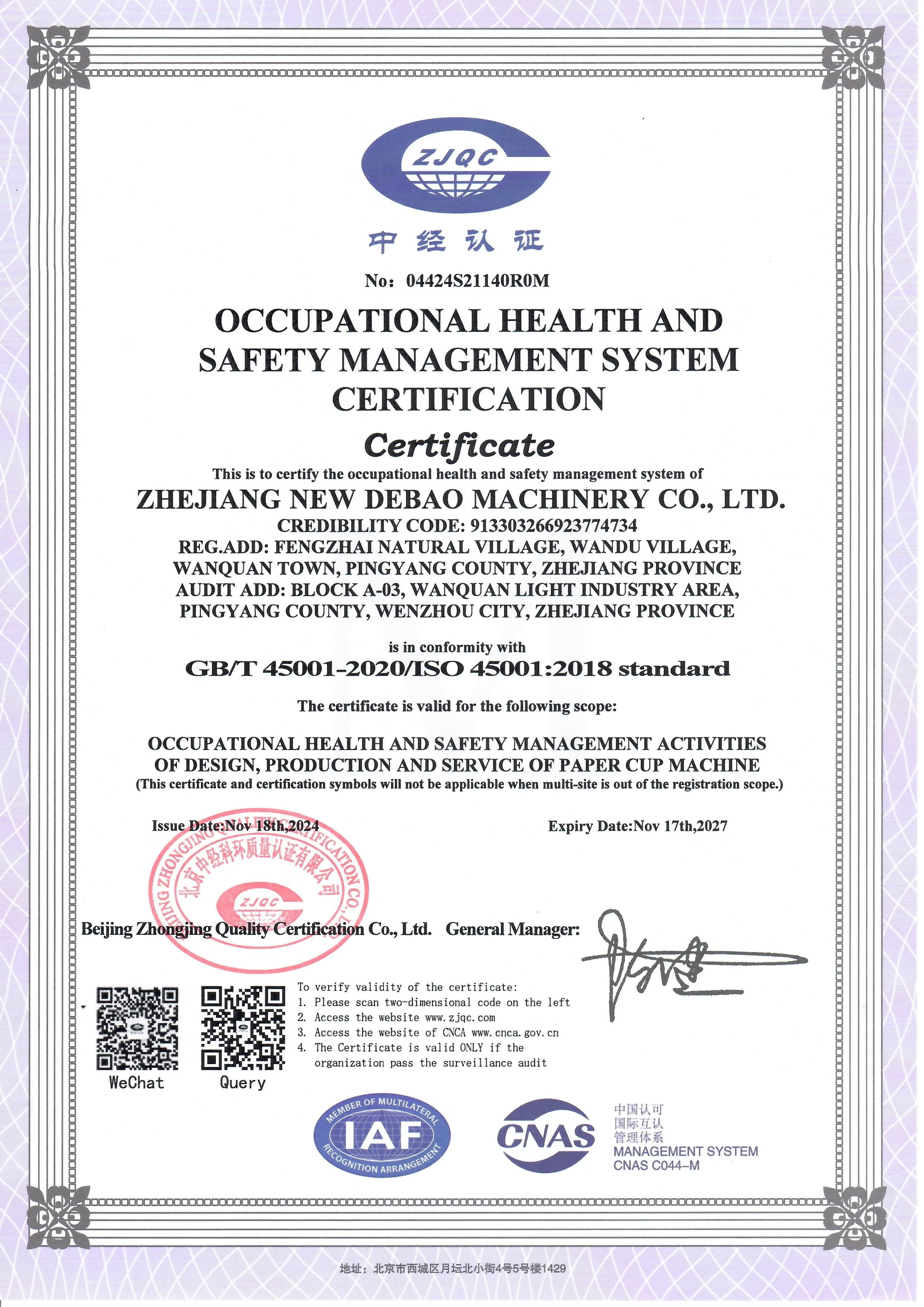 OCCUPATIONAL HEALTH AND SAFETY MANAGEMENT SYSTEM CERTIFICATION