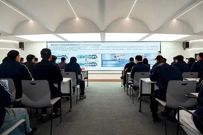 In order to improve the professional use of tooling skills of the staff, to ensure the quality of machining production, our company on April 10, 2024 at 5:30 p.m. to carry out a training meeting on CNC machine tools. The training specially invited Mr. Xu Jinlin, application engineer of Seco Tool Co., Ltd. and Wang Pengju, engineer of the company's technical talents, to give lectures to the relevant staff, aiming at enabling the staff of various positions to strengthen their professional knowledge, and to better practice and transform them in their work.