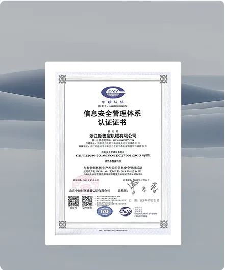 After 20 years concentrate on research, New Debao has gained more than 170 patents and 35 software copyrights; the Enterprise has passed ISO 9001: 2015 International Quality System Certification, ISO 14001: 2015 Environmental Management System Certification, OHSAS 18001: 2007 ISO 45001:2018Occupational Health and Safety Management System Certification, GB/T 29490: 2013 Intellectual Property Management System Certification, and all Products are certified by CE.